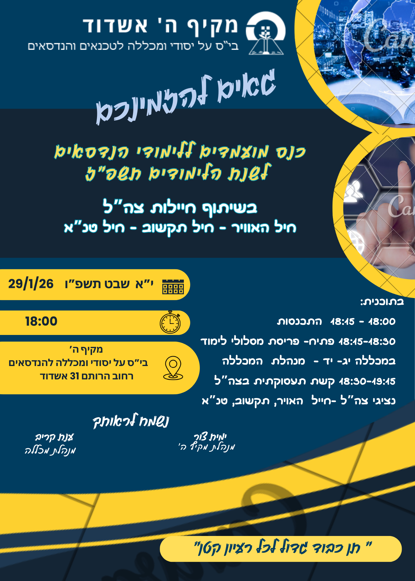 בית ספר על יסודי ומכללה להנדסאים שהוא בית חם ומשפ"חה אוהבת.